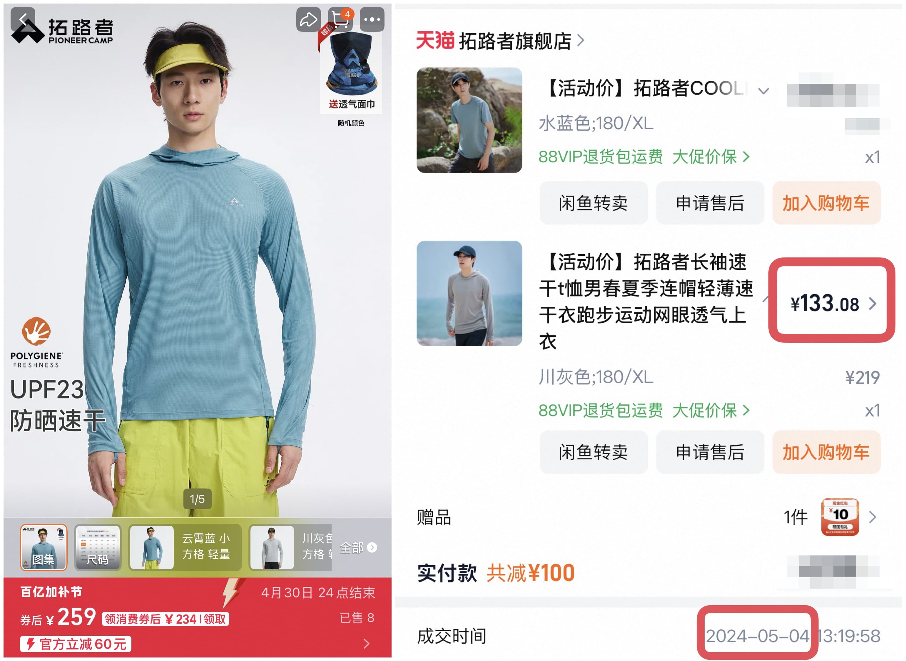 拓路者拍电影、请代言,对产品价格的直接影响就是,同样的一件“太阳衣”,价格涨的非常离谱: